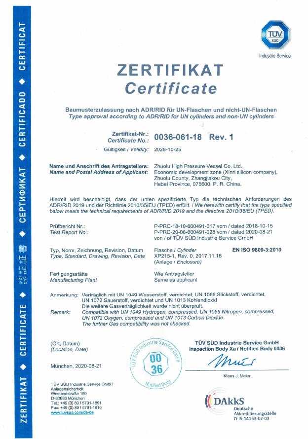 0036-061-18-R1 Zhuolu HPVC XP215-1 EN ISO9809-3