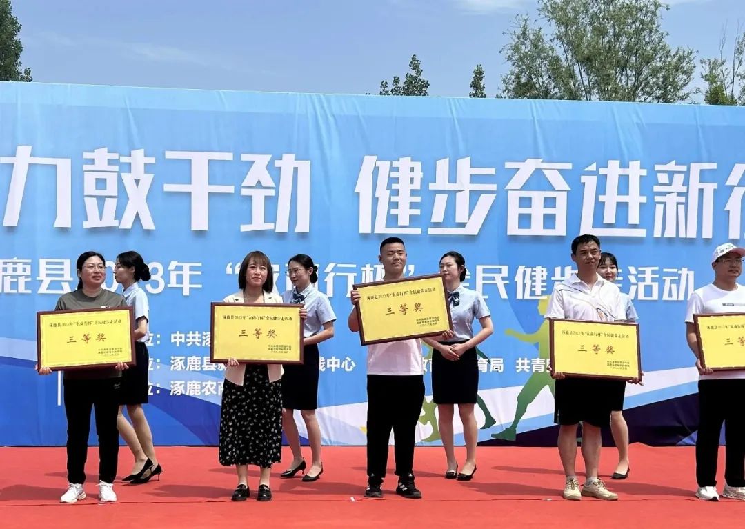 我公司員工團齊心協(xié)力,相互協(xié)助,在“農(nóng)商行杯”全民健步走活動上獲得了三等獎,通過本次全民健步走活動展示了我公司員工團隊精神,